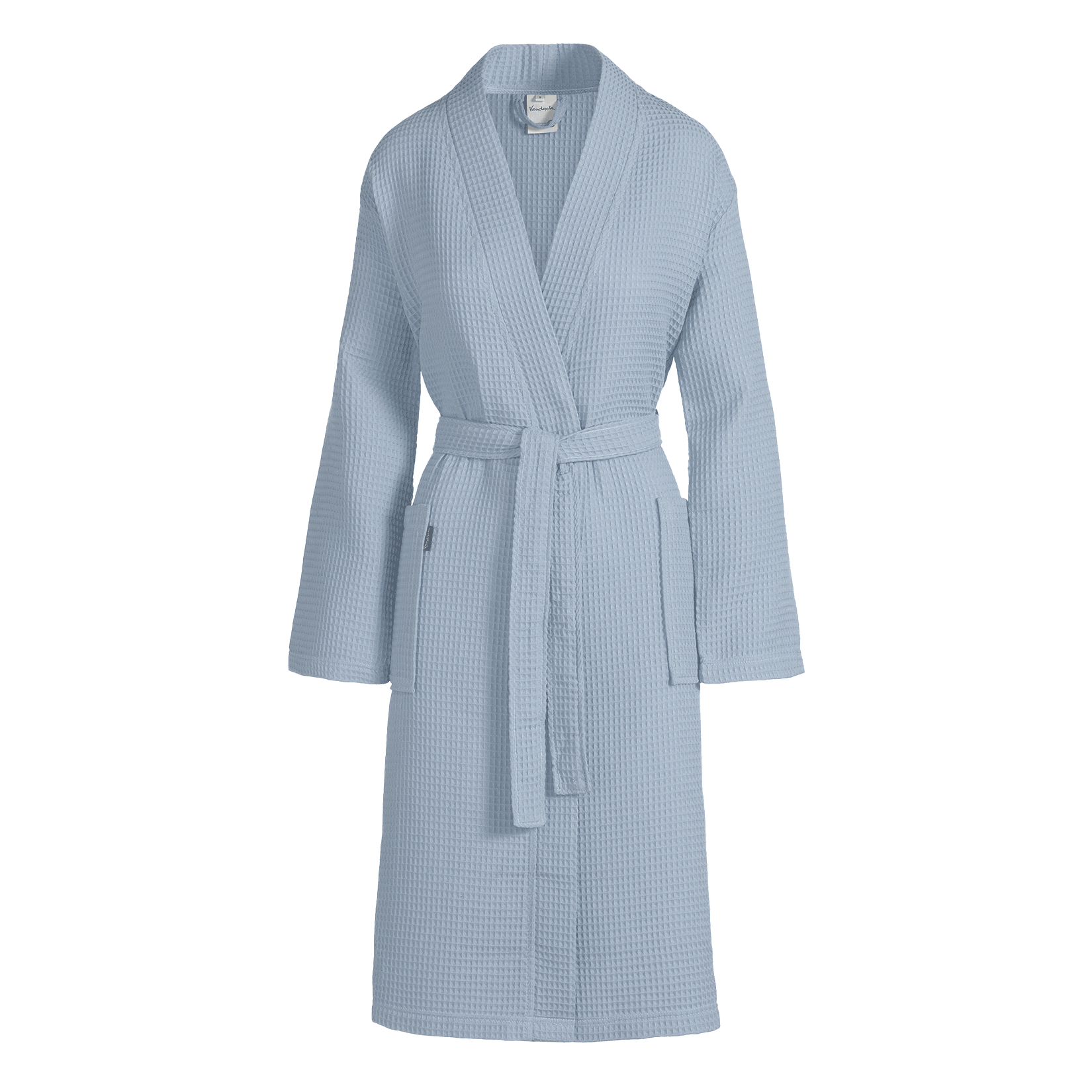 De Biarritz badjas in light blue is een uniseks kimono style badjas met wafelstructuur. De stof van 100% katoen voelt licht en zacht aan en weegt 200 gr/mtr2. De badjas valt tot op de knie en sluit met een ceintuur. Aan beide zijden zitten grote insteekzakken voor je handen of kleine items. In de kraag zit een lusje zodat je hem eenvoudig ophangt. De lichte light blue kleur geeft een frisse uitstraling na het douchen of thuis.