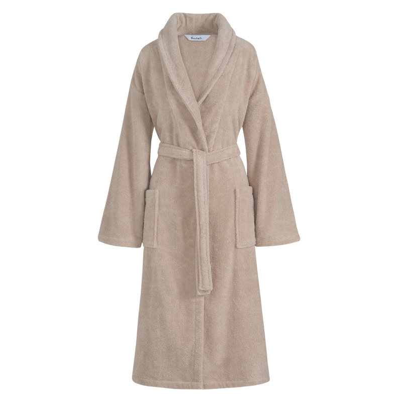 Badjas Ranger in almond is gemaakt van hoogwaardig Amerikaans katoen dat zacht aanvoelt en uitstekend absorbeert. De zachte, neutrale kleur straalt rust uit, terwijl de badjas langdurig comfort biedt. Door de sociaal verantwoorde productie en het Made in Green-label is dit een duurzame keuze voor dagelijks gebruik.