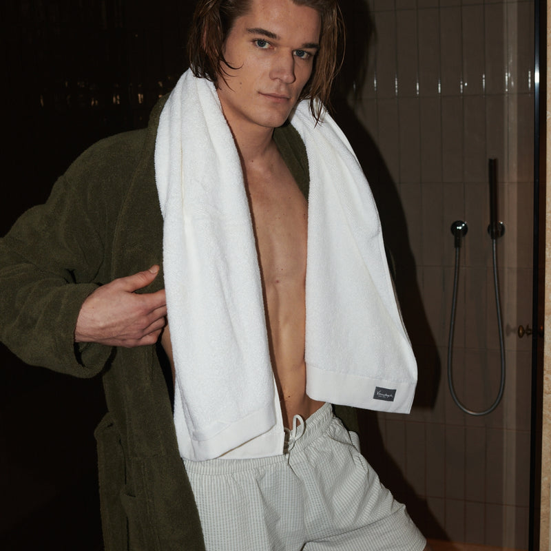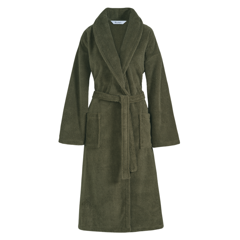 Ranger badjas in de kleur thyme is vervaardigd uit 100% katoen van Amerikaans oorsprong. De zware kwaliteit zorgt voor een comfortabele, luxe feel, terwijl het sterke absorptievermogen ideaal is na bad of douche. Duurzaam geproduceerd en voorzien van het Made in Green label, is dit een bewuste badjas in een rustige groentint.