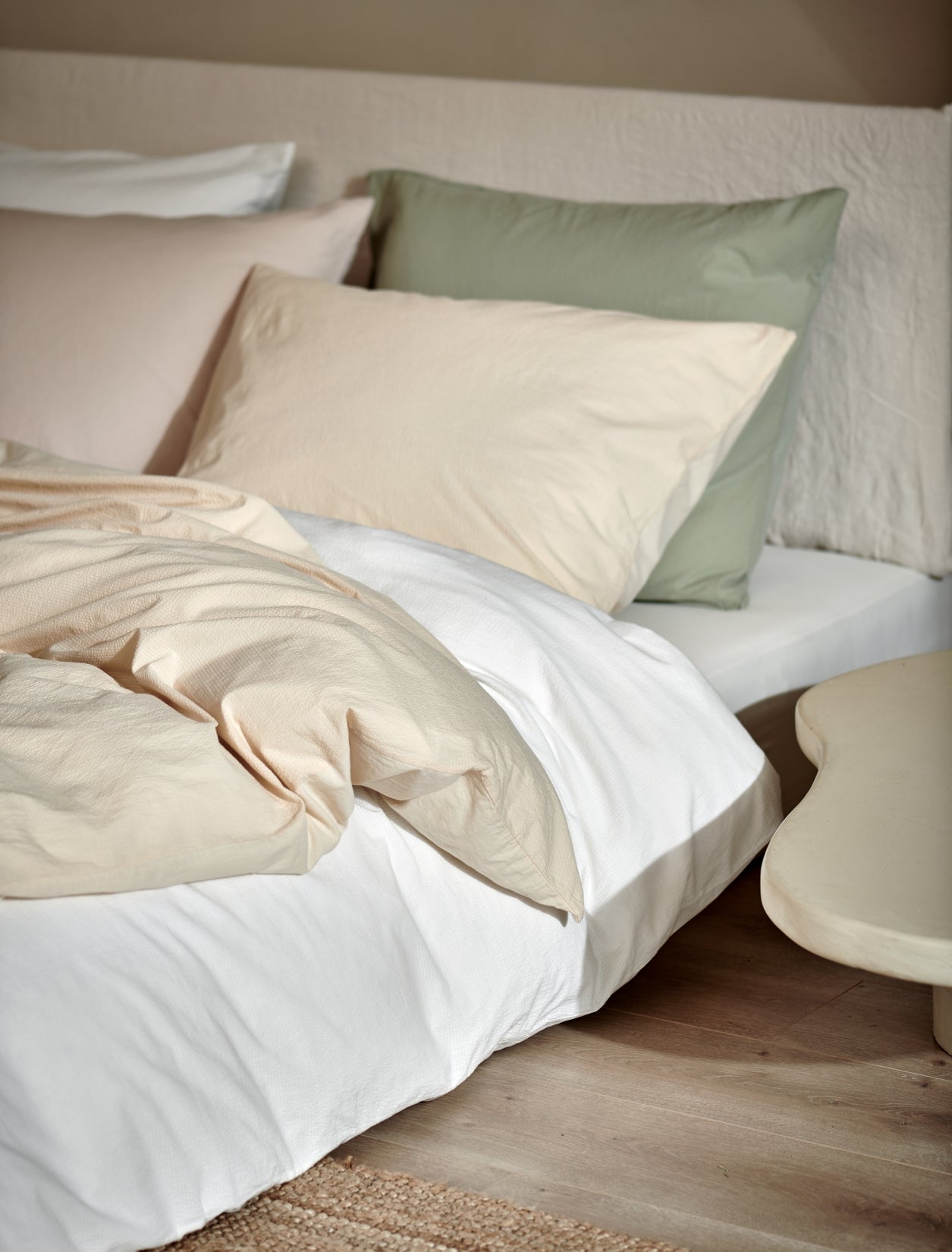 Het is aan te bevelen om dekbedovertrekken met donkere kleuren te wassen op maximaal 40°C en dekbedovertrekken met lichte kleuren op maximaal 60°C. Was binnenstebuiten, zodat de kleuren mooi blijven en je zo lang mogelijk van het dekbedovertrek kunt genieten. Het dekbedovertrek kan op lage temperatuur gedroogd worden in de droger. Haal het direct uit, zodat het zo min mogelijk kreukt en je niet hoeft te strijken. Indien nodig kan het op hoge temperatuur gestreken worden.