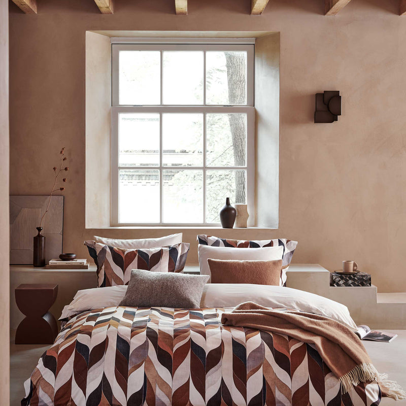 Dekbedovertrekset Herring XL in multi is gemaakt van 100% katoensatijn en toont een opvallend visgraatpatroon in warme tinten. De voorzijde is bedrukt, de achterzijde is uni. De gladde stof en rijke kleurcombinatie geven je slaapkamer een stijlvolle, comfortabele uitstraling. Dit 100% katoensatijnen dekbedovertrek biedt een luxueuze en comfortabele slaapervaring dankzij de zachte, soepele textuur en ademende eigenschappen. Het speciale weefsel van fijne katoengaren zorgt voor een glad oppervlak en lichte glans. Hierdoor voelt het heerlijk zacht op de huid, wat zorgt voor comfortabel slapen. Bovendien reguleert katoen van nature de lichaamstemperatuur en absorbeert het vocht, wat resulteert in een aangenaam slaapklimaat en goede nachtrust.