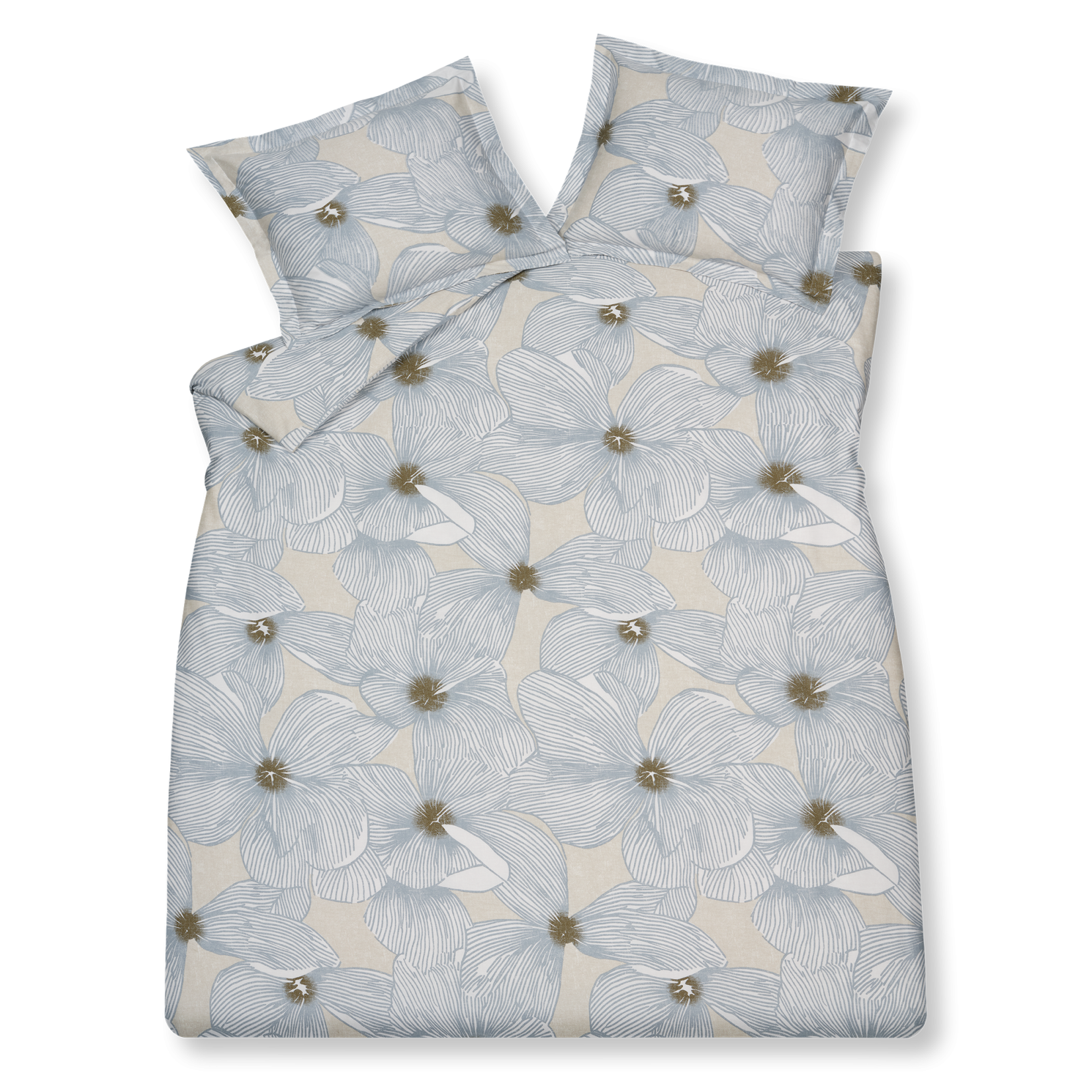 Moonflower XL dekbedovertrekset in de kleur stone toont een verfijnd lijnenspel in bloemvormen, dubbelzijdig bedrukt op 100% katoensatijn. Het dessin oogt rustig en elegant, en geeft de slaapkamer een harmonieuze uitstraling. Dit 100% katoensatijnen dekbedovertrek biedt een luxueuze en comfortabele slaapervaring dankzij de zachte, soepele textuur en ademende eigenschappen. Het speciale weefsel van fijne katoengaren zorgt voor een glad oppervlak en lichte glans. Hierdoor voelt het heerlijk zacht op de huid, wat zorgt voor comfortabel slapen. Bovendien reguleert katoen van nature de lichaamstemperatuur en absorbeert het vocht, wat resulteert in een aangenaam slaapklimaat en goede nachtrust.