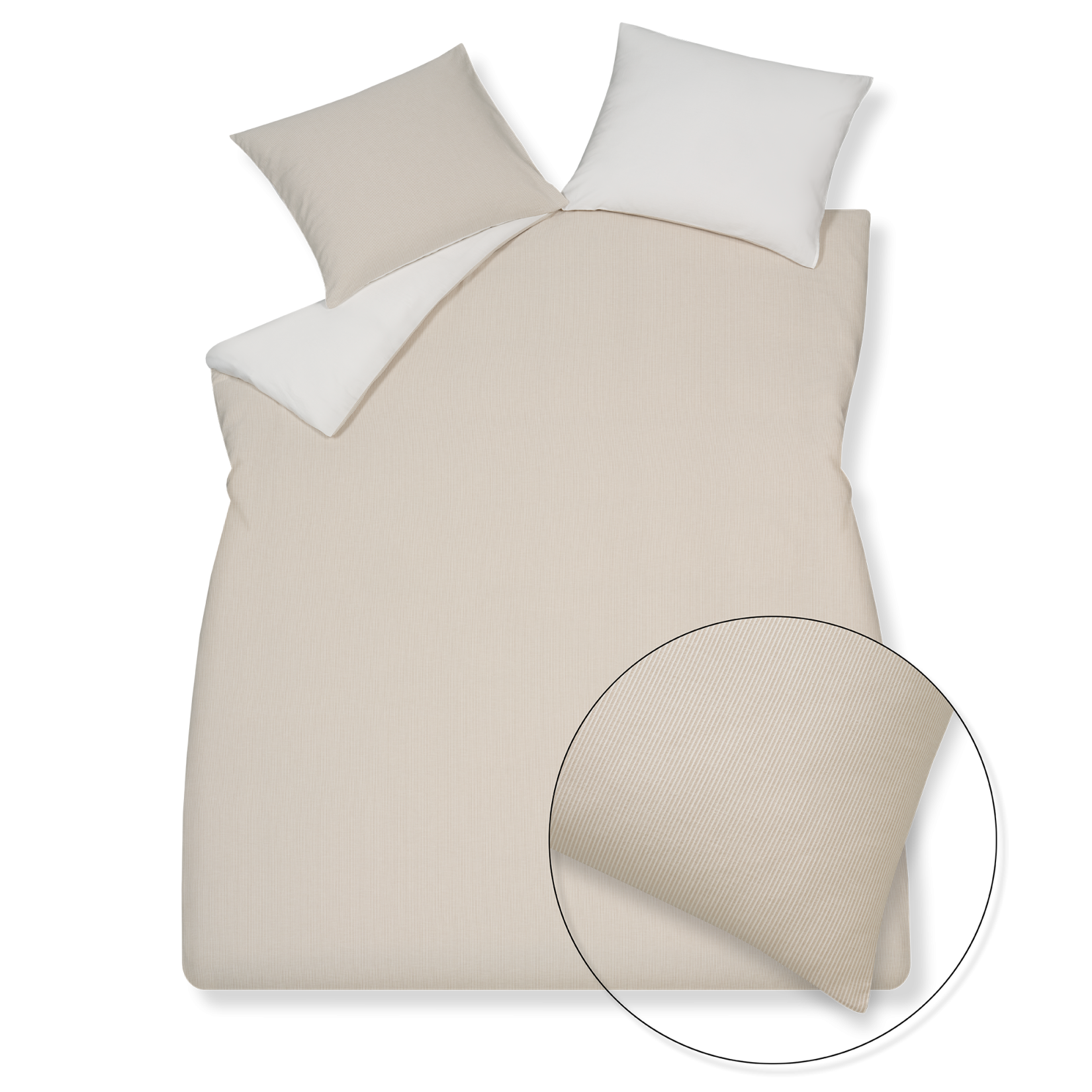 Pure 89 stone dekbedovertrek heeft hele fijne zandkleurige met wit jacquard geweven strepen. De achterkant van het dekbedovertrek is effen wit en van 100% katoensatijn, dus extra zacht. De kussenslopen hebben ook aan de ene kant geweven streepjes en aan de andere kant zijn ze effen wit. Pure 89 stone dekbedovertrek van Vandyck is een luxe basic. Deze jacquard geweven dekbedovertrek met aan de achterzijde 100% katoensatijn biedt een luxueuze en comfortabele slaapervaring dankzij de zachte, soepele textuur en ademende eigenschappen. Dit dekbedovertrek is ook verkrijgbaar in de kleuren powder blue en sepia pink.