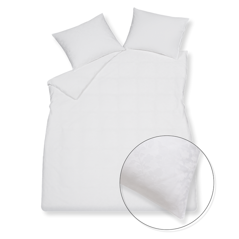 Purity Ravenna dekbedovertrekset in white is een jacquard geweven dekbedovertrek met een verfijnd bladmotief. De achterkant is effen en gemaakt van zacht katoensatijn. Het is een luxe dekbedovertrek van 100% katoensatijn, waardoor de stof soepel valt en heerlijk zacht aanvoelt. Zo combineert dit dessin subtiele structuur met het comfort van glad katoen en geeft het je slaapkamer een elegante, natuurlijke uitstraling.