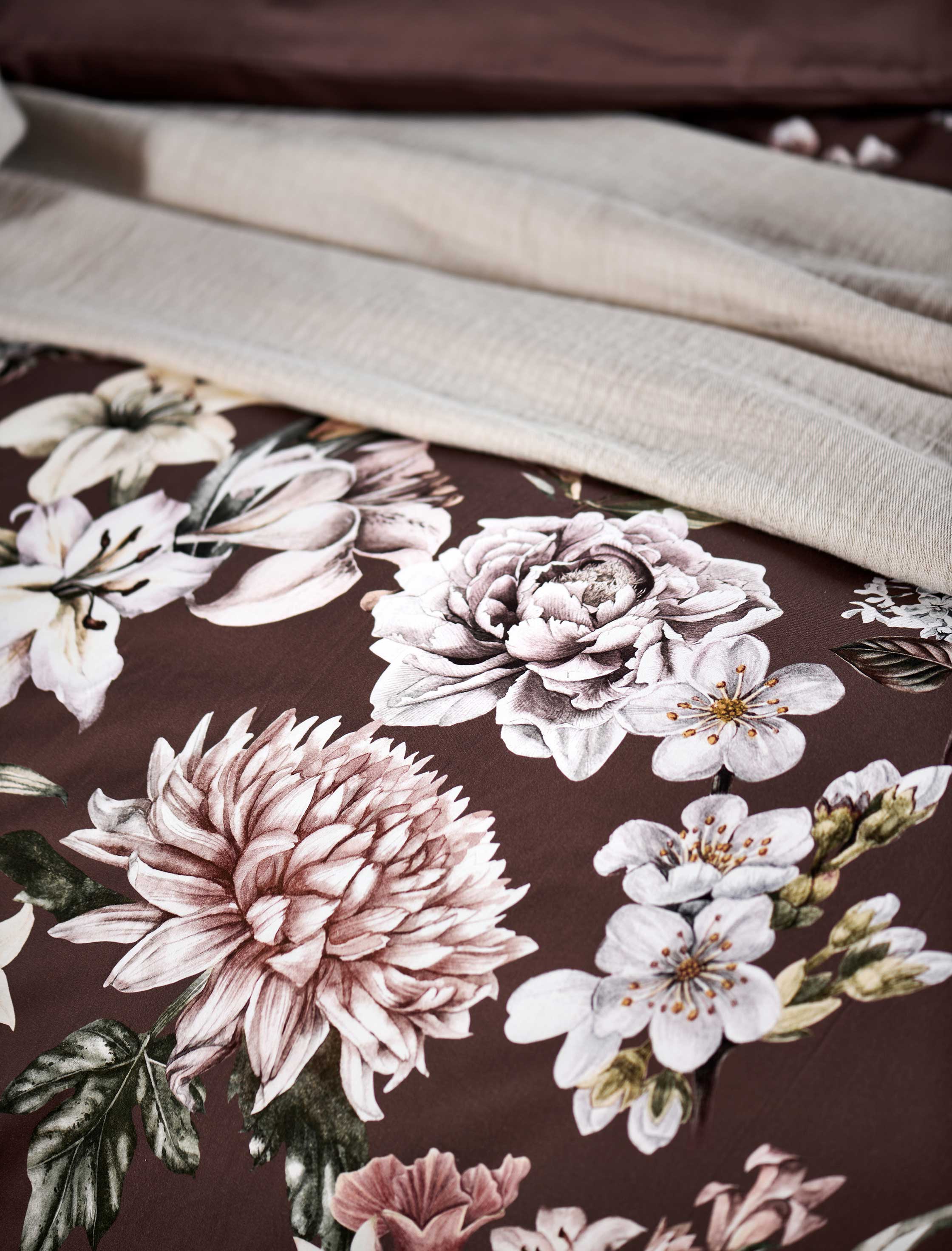 Dekbedovertrekset Rosalie in rosewood toont een bloemenprint in warme rozetinten op een zachte roze basis. De voorzijde is bedrukt, de achterkant uni. Het dekbedovertrek is gemaakt van soepel katoensatijn en wordt geleverd met een oxford kussensloop. Ook beschikbaar in cream tan. Dit 100% katoensatijnen dekbedovertrek biedt een luxueuze en comfortabele slaapervaring dankzij de zachte, soepele textuur en ademende eigenschappen. Het speciale weefsel van fijne katoengaren zorgt voor een glad oppervlak en lichte glans. Hierdoor voelt het heerlijk zacht op de huid, wat zorgt voor comfortabel slapen. Bovendien reguleert katoen van nature de lichaamstemperatuur en absorbeert het vocht, wat resulteert in een aangenaam slaapklimaat en goede nachtrust.