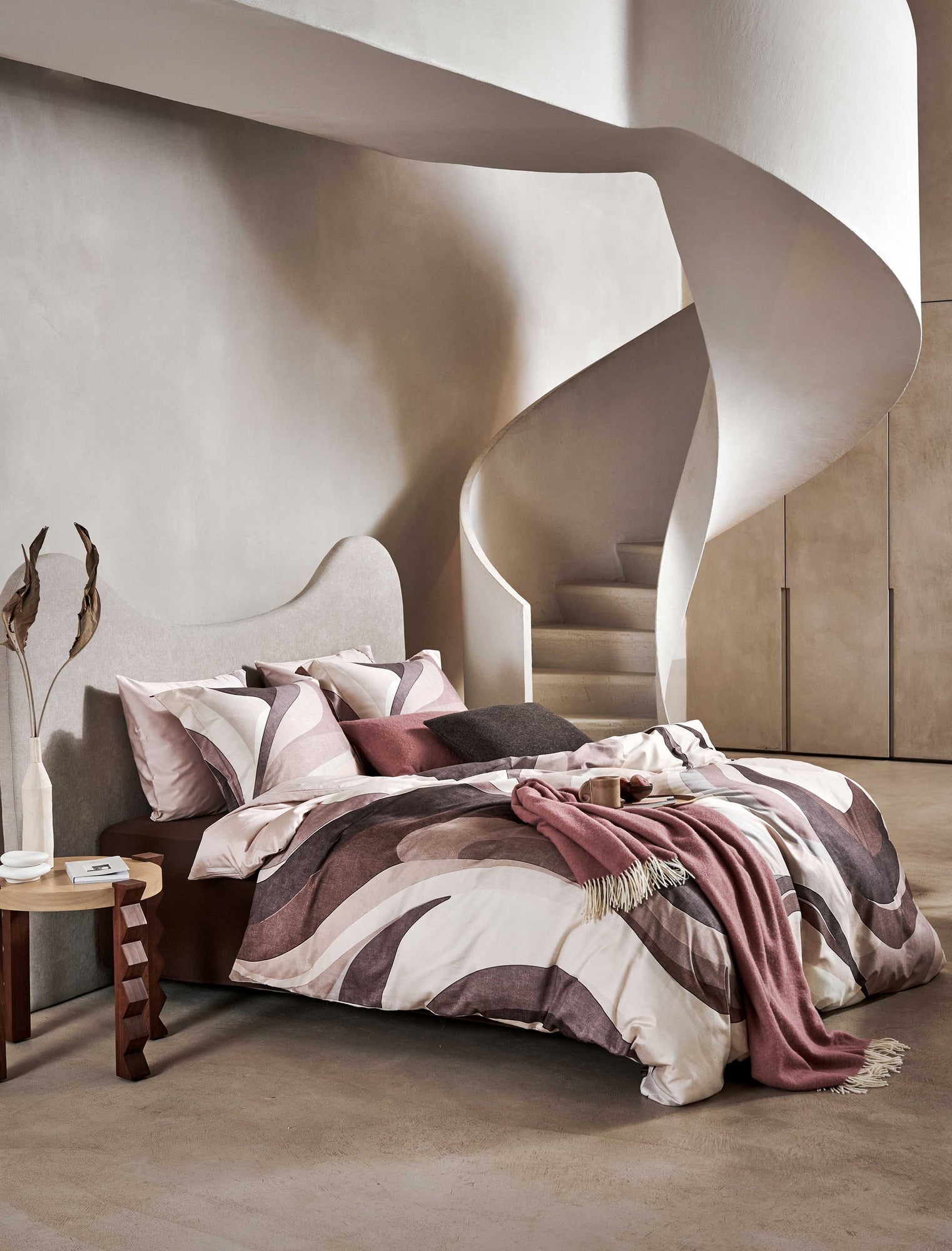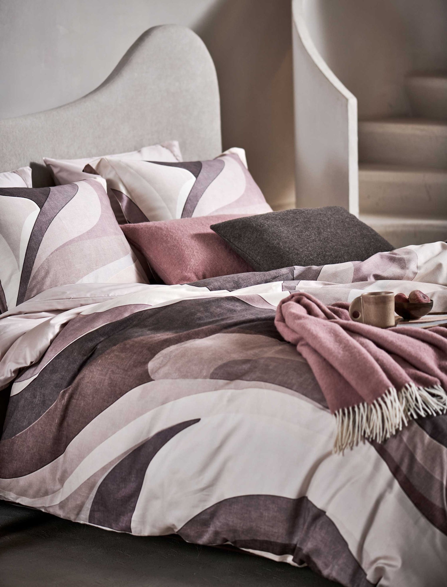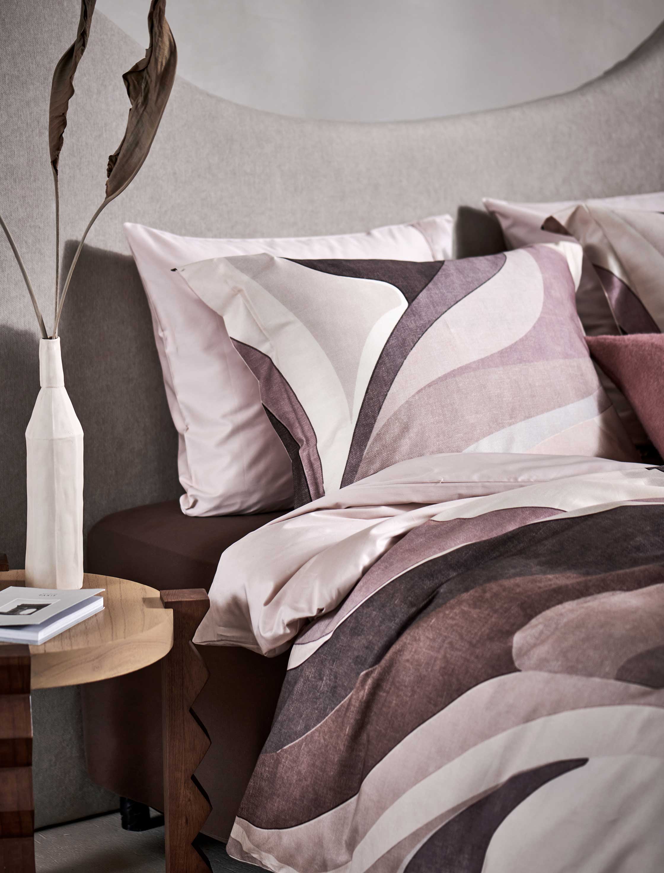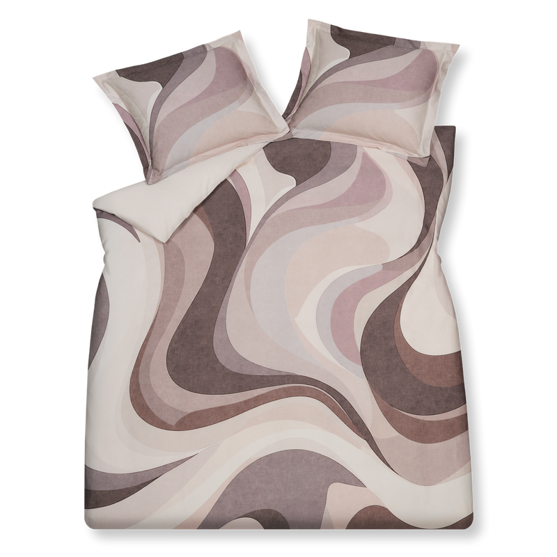 Dekbedovertrekset Waveform in multi is een artistiek ontwerp met organische vormen in roze en paarse tinten. De voor- en achterzijde zijn beide bedrukt, wat zorgt voor een harmonieus geheel. Het dekbedovertrek is gemaakt van 100% katoensatijn en wordt geleverd met een kussensloop met oxford rand. Dit katoensatijn biedt een luxueuze en comfortabele slaapervaring dankzij de zachte, soepele textuur en ademende eigenschappen. Het speciale weefsel van fijne katoengaren zorgt voor een glad oppervlak en lichte glans. Hierdoor voelt het heerlijk zacht op de huid, wat bijdraagt aan comfortabel slapen. Bovendien reguleert katoen van nature de lichaamstemperatuur en absorbeert het vocht, wat resulteert in een aangenaam slaapklimaat en goede nachtrust.